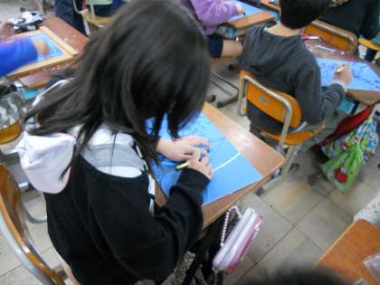 下書きを終え,実際に彫刻刀で彫る段階にはいりました。