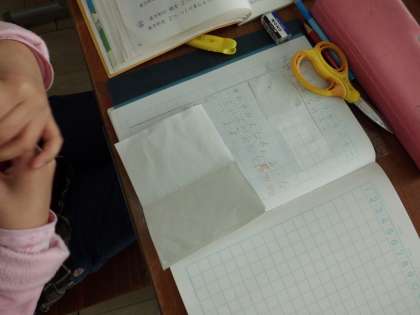 紙を切って,長方形の特徴をさがしています。