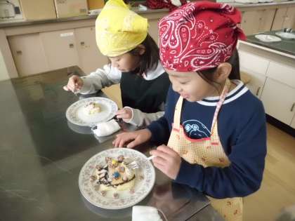 子ども達は,それぞれケーキのデコレーションにこだわっています。