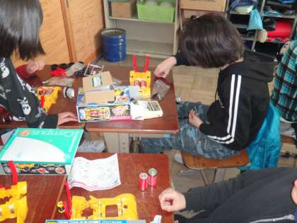 乾電池1個から2個にして電流を大きくしたり、コイルの巻き数を増やしたりして電磁石の強さが変わるのか実験をしました。