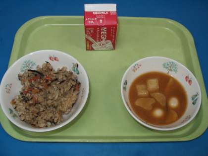 みそ汁には,わかめ・たけのこ・うずらたまご・麩が入って具だくさんでした。