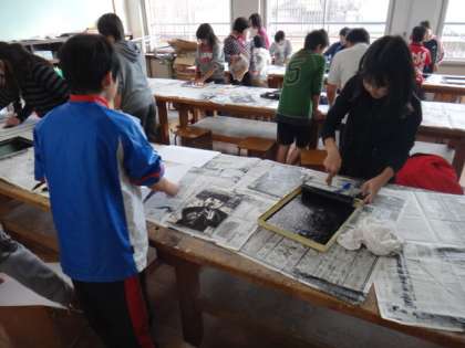 最後に和紙をはがし、紙に刷られた自分の作品に満足の顔を浮かべる子どもたちの姿が見られました。