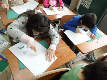 ちょっとかたい紙は切りにくいけれど,みんな上手に切っていました!