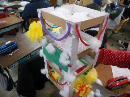 今,4年生の図工の授業では,「コロコロガ—レ」を製作しています。
