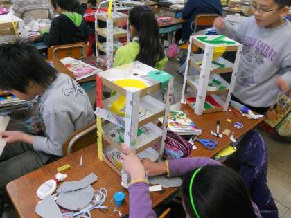 子どもたちは,それぞれのテーマにあわせながら,設計図を考えるところから始めました。