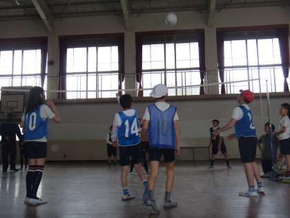 強く打つとどこに飛ぶのかわからないので、力の加減がわからず、子どもたちは迷いながらトスを上げていました。