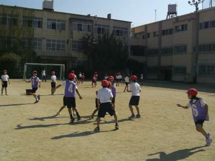 他クラスとの試合に子どもたちは,ウキウキしていました。