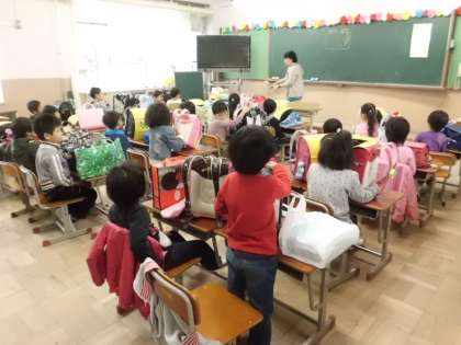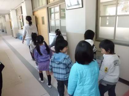 と,きいろ,ピンク,あおのチューリップとウサギを目印に,教室へ向かいました。