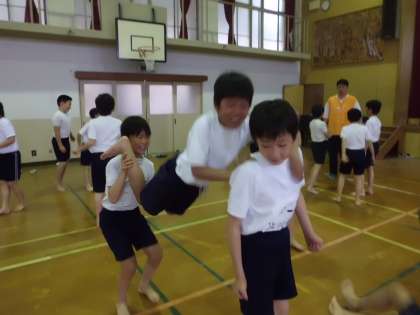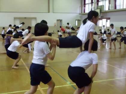 組体操練習第2弾は,3人技をしました♪