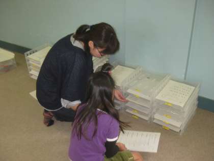 中には、「今日はこんなにできた〜」と、たくさんのプリントを見せてくれる子も。