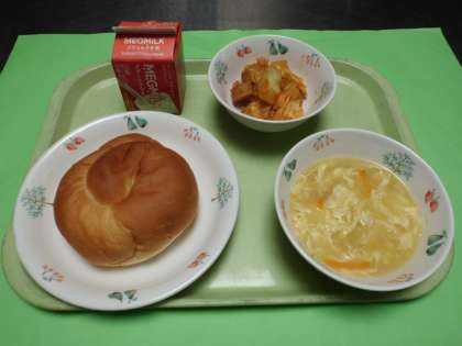 コーンスープは、チキンスープで野菜を煮込んでコーン缶をたっぷり入れ、片栗粉を加えて卵をとじています。