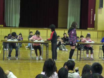 12月3日の中間休みに体育館で豆つまみ大会がひらかれました!!