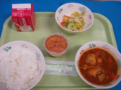 今日は,北海道で生まれたスープカレーをヒントにした献立です。