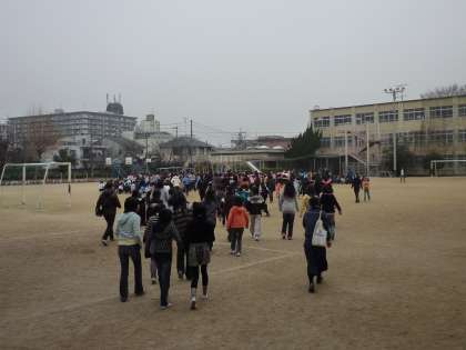 休み時間中の避難訓練にも関わらず、