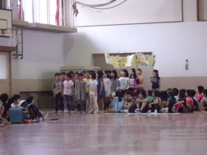 2時間目に体育館でなかよし集会がありました。どの学級も話し合って決めた学級目標を元気よく発表できていました。自分たちの学校生活をよりよくしていくために考えたことなので,1年間意識してほしいです。