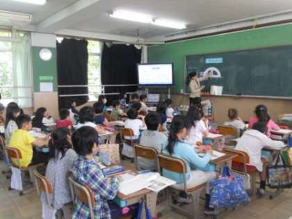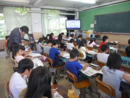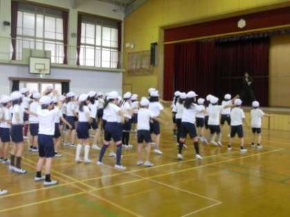 4年生では,運動会で演技するソーラン節を練習している姿を,お家の方々に見ていただきました。拍を数えながら,全員がそろうように一生懸命に練習しています。