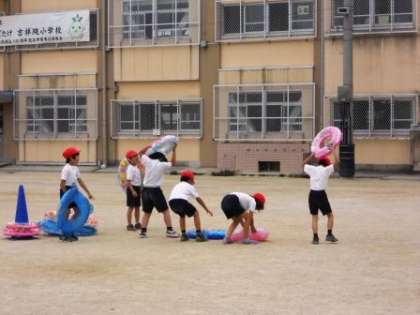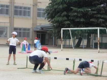 今日は,個人走の練習。帽子をかぶったり,ハードルをくぐったりしながら,ゴールを目指します。今年はうきわも使うようです。どんな競走になるのか,本番が楽しみです。