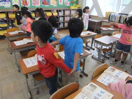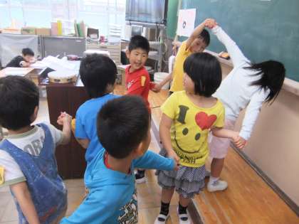 子ども達は,楽しそうに友だちと歌を歌いながらやっていました。