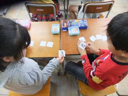 数が大きくなると少し難しいようですが,一生懸命に数図ブロックを動かしながら数の学習に取り組んでいました。