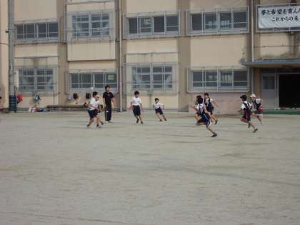 運動会に向けて練習をしている毎日ですが,放課後は部活動でがんばっています。今年1年がんばろうと決めた部活動。タグラグビー部では,パス練習と試合形式の練習とに分かれて練習に励んでいます。