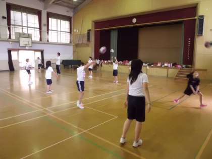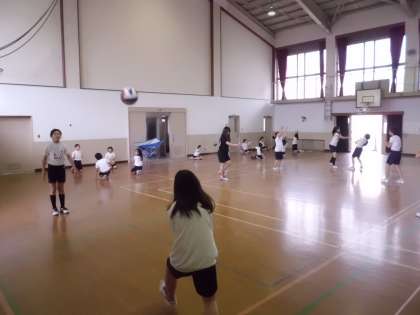 バレーボール部をちょっとのぞいてみると,パス練習の真っ最中。アタックによる得点をするためには,サーブカットしなければなりません。しっかりとレシーブの練習を何度も繰り返すことで,体に身に付き,自然と反応してくれるでしょう。