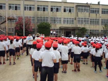 6月7日(土)は運動会。今日は,全校練習をしました。入場や退場,開会式に全校ダンスなど動きを合わせました。しっかりとした行進や大きな宣誓ができるように練習していきます。