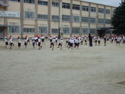 2年生は最後のリハーサル。運動場で隊形を確認しながら踊りました。とっても一生懸命踊っている姿がかわいかったです。本番では,今日よりももっと元気な踊りを見せてくれると思います。