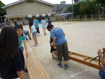 6年生と一緒に、運動場に出て、自分の係活動の仕事をしました。