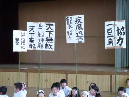 長い竿につけた熟語におもいを込め、明日は正々堂々と戦います。