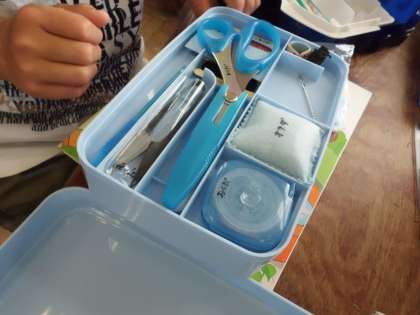 家庭科では、裁縫セットを使っての練習が始まりました。
