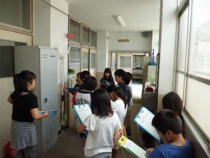 4年生の社会科の学習で,今日は,学校にどんな防災設備があるのか調べました。