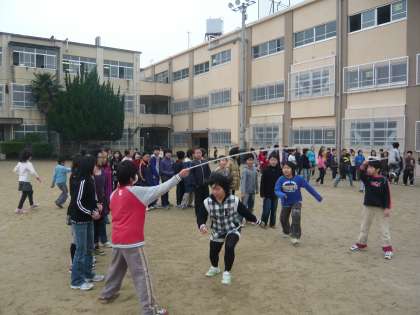 中間休みには,かろうじて外で大なわとびの練習ができました。