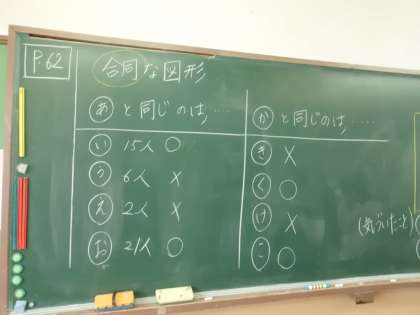 微妙にずれてしまう図形もあり、白熱した学習になりました。