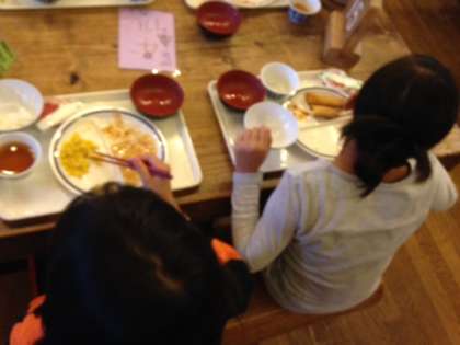 夕食ではみんないっぱい食べてます。