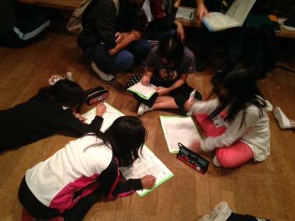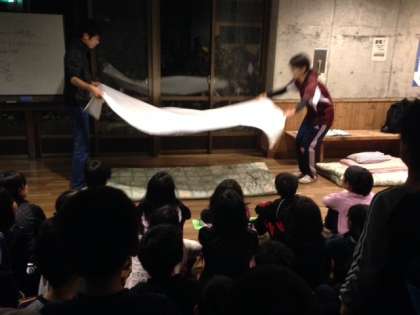 山登りの感想を書いたり,布団の敷き方の確認をしました。