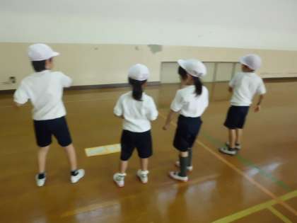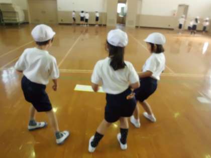 体育の学習では,リズムに合わせて体を動かす学習をしました。