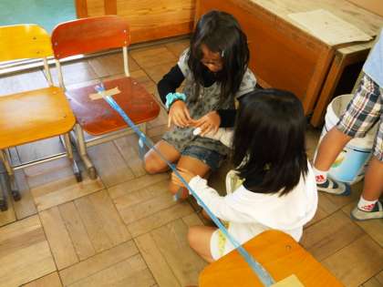 図工の学習で,「ならべて つないで つつんで」という