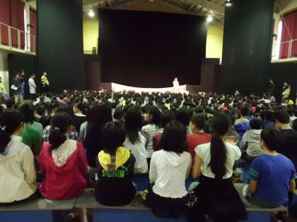 15日3・4時間目に「天使のかいかた」という劇を観ました。歌あり笑いありの楽しい劇でした。天使役の方がユーモアあふれる演技で劇全体を盛り上げてくれました。その後,感想を書いているクラスもありました。