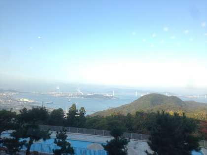 香川県は,今日も天候に恵まれています。宿舎の窓から外を見ると,とても綺麗な景色が見えています。1日お世話になった宿舎の方に挨拶をしてから,バスでこんぴらさんへ向かいます。