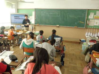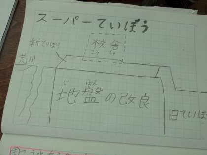 今日は、洪水を防ぐ工夫について映像を見たり、