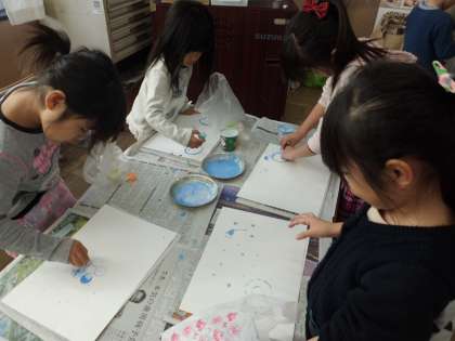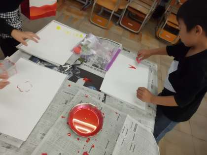 図工の学習で身近にある材料を使ってスタンピングをしました。