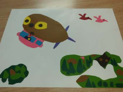 題材は「どこかいきのバス」という児童書です。子どもたちは,お話の中から好きな場面を選び,その場面の版画を作っています。
