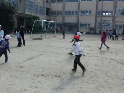 11月27日の中間休みは,くすのき学級の皆で,おにごっこをしました。肌寒い中でしたが,元気に運動場で遊びました。
