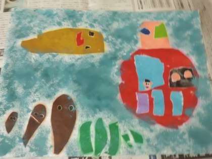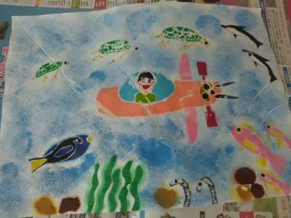 海の色を表現するにしても,濃い青を使うお友達もいれば,薄い青を使うお友達もいて,様々な作品ができあがりました。