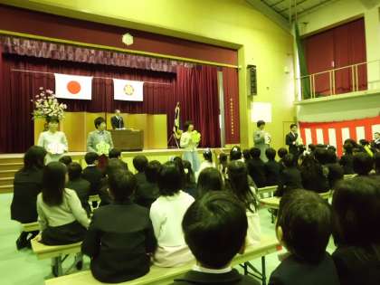 今年の新入生は87名。東門の桜の花ももちこたえてくれました。
