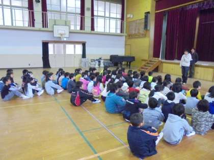 子どもたちは,真剣に話を聞いていました。高学年らしい立派な姿が見られました。