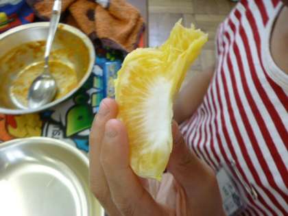 「給食室からこんにちは」で甘夏みかんのむきかたを確認しました。