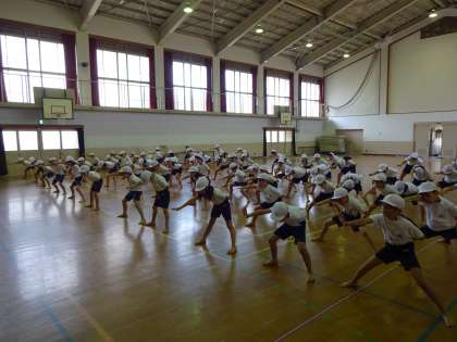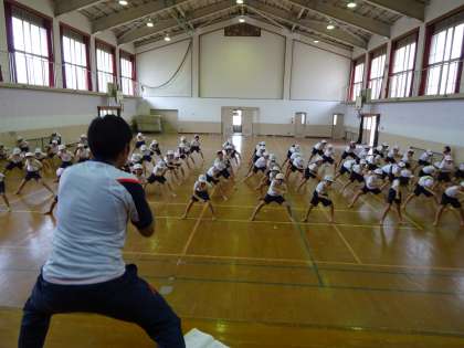 足を広げたり,腕を大きく回したりする動きがたくさんあるので,筋肉痛になっている人もいるようです。