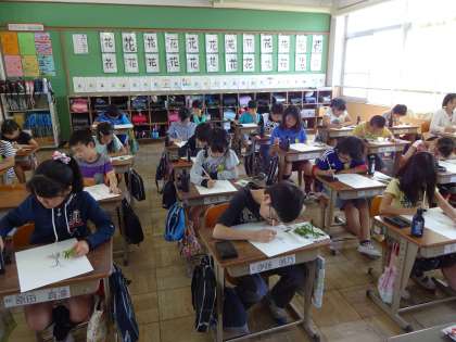 みんなとても集中して描いていたので,絵と言葉の響き合いがすばらしい作品ができました。