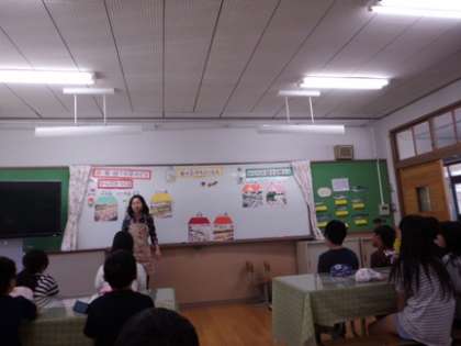 お話を聞いて,子ども達は,給食メニューに使われている食品が